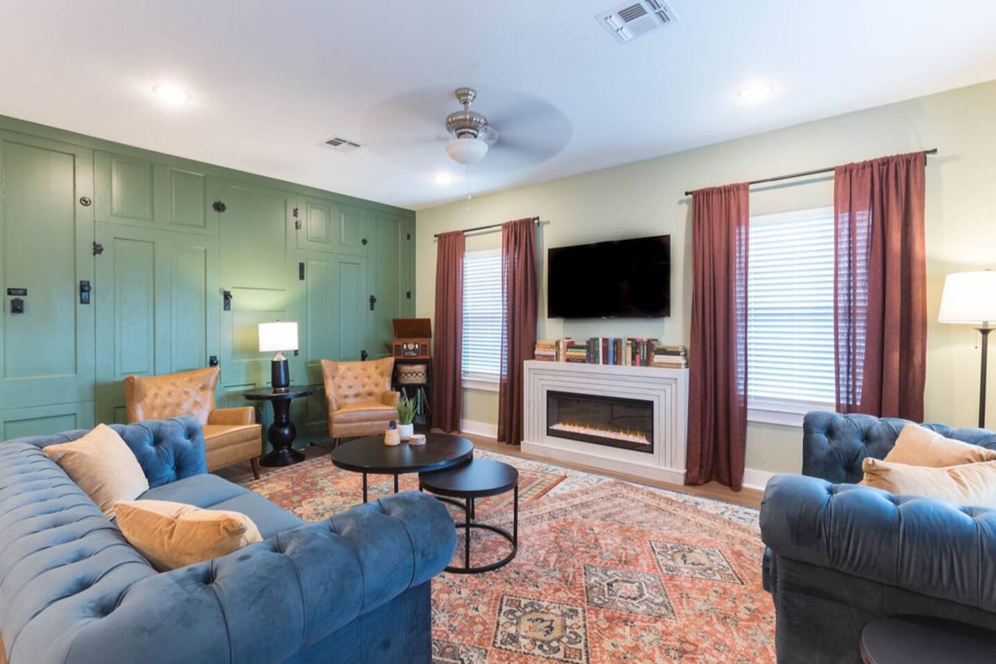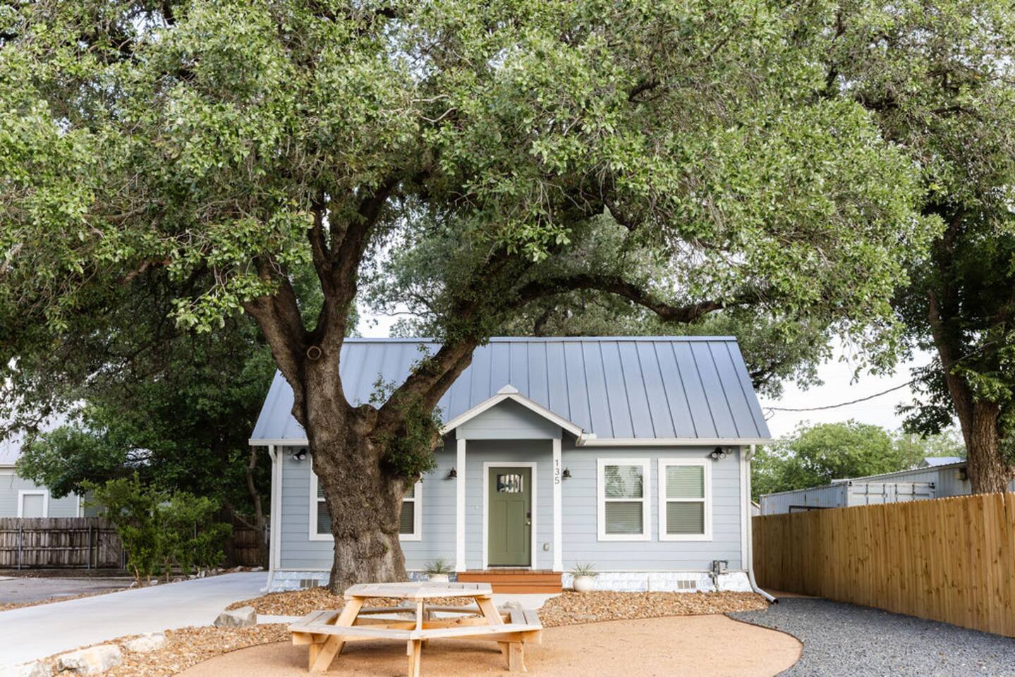 Welcome to Heritage Oak Haven! This thoughtfully rebuilt 1920 bungalow is centrally located amidst the top attractions in New Braunfels. Creative detail has been invested into every corner of this space offering a glimpse of history with a fresh artful touch. Nestled between two massive heritage oak trees, this stylish house is thoughtfully appointed to comfortably accommodate families. Just steps away from the entrance of Schlitterbahn and easily walkable to the Comal River & downtown life.